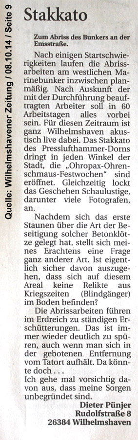 Aktualisierungen Bunker in Wilhelmshaven und Umkreis 2014