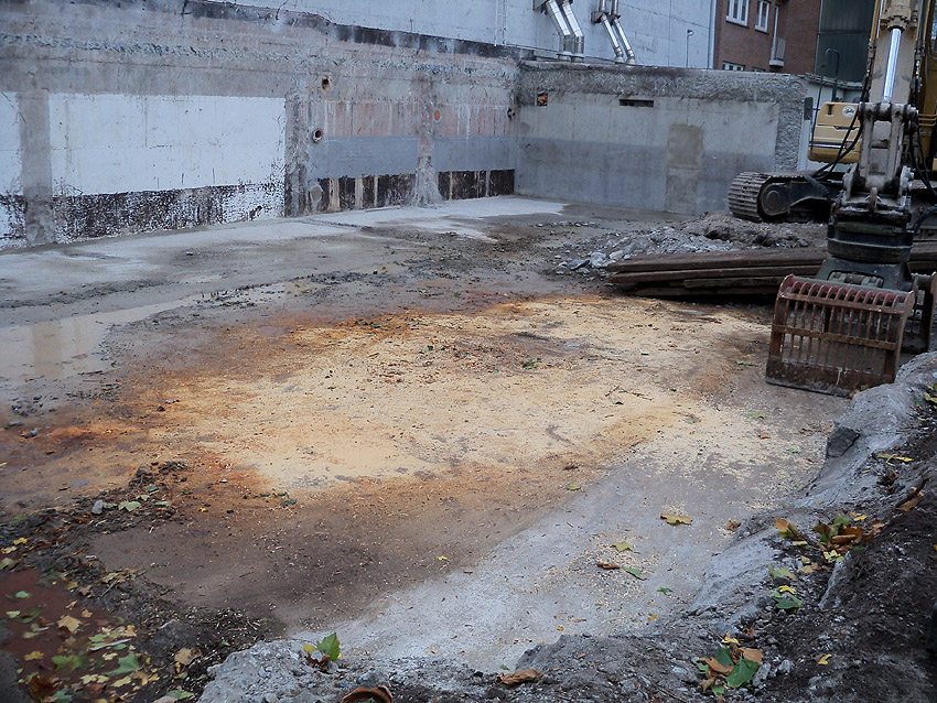 Endlich wieder besseres Wetter. Heute wurde an der Fundamentplatte weiter zerkleinert. Von Norden griffen zwei Bagger an, von Westen ein weiterer. Die Brechmaschine ist auch am heutigen Tage außer Funktion.