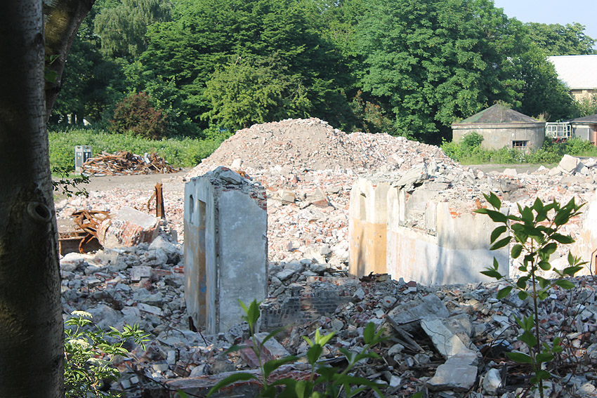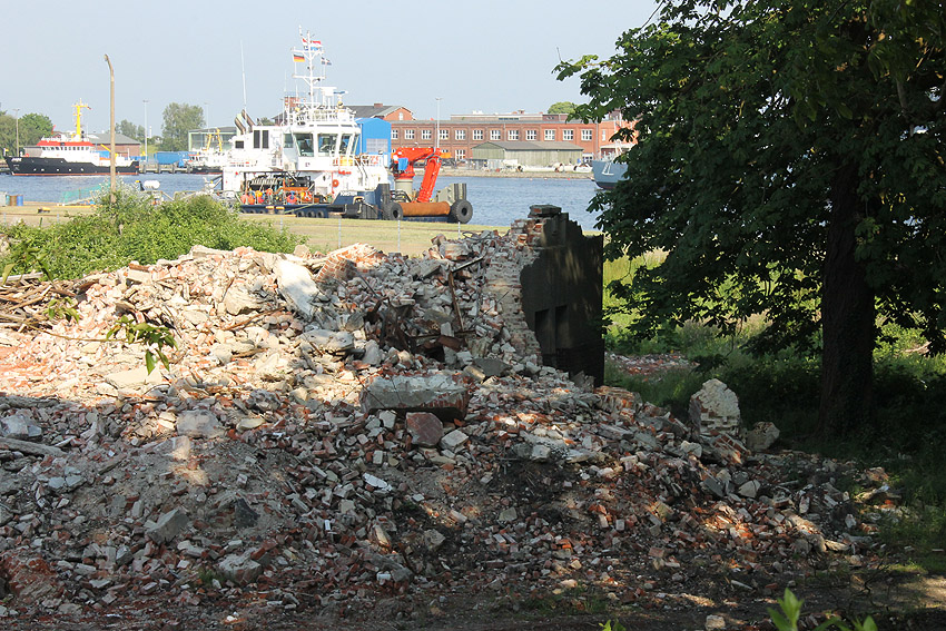 Schutzbau Rüstersieler Straße 67: Der Abriss ist weiter fortgeführt worden. Entweder heute, oder am gestrigen 19. April... Die Decke des Bauwerkes ist fast zerstört. Hier