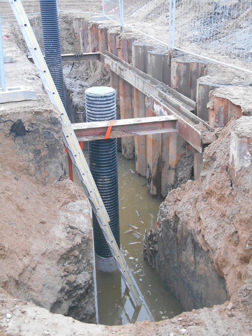 Kiel: Die Bauarbeiten am / auf dem Standort des Augustenbunkers gehen weiter. Die Mauerwerksschichten außen an den Umfassungswänden dienten als Zusatzpufferschicht bei Naheinschlag von Bomben im Erdreich (Verdämmungseffekt). Die Spundwände stammen noch aus der Bauphase des Tiefbunkers (Aushub / Baugrube). Vielen Dank wieder an Herrn Schwabedissen für das Bildmaterial! Hier