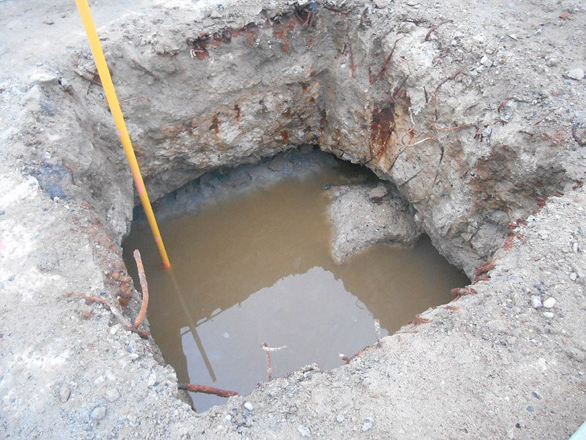 Ehemaliger Standort des kleinen Schutzraumes Rüstersieler Straße 67: Nur noch eine mit Wasser vollgelaufene Kuhle... Hier