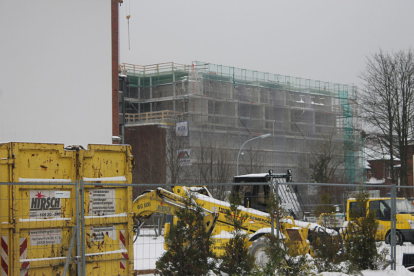An der Bunkersohle Allerstraße noch nichts Neues. Das Grundstück liegt weiter im Winterschlaf... Auch an der Virchowstraße keine großartigen Veränderungen. Der Überbau des Bunkers ist im Rohbau scheinbar vollendet. Hier