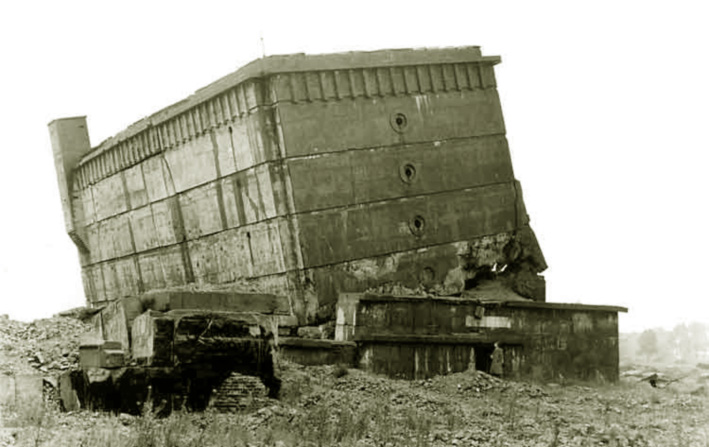 Sicht aus dem gesprengten Bunker heraus zum ebenfalls gesprengten Befehlsbunker...