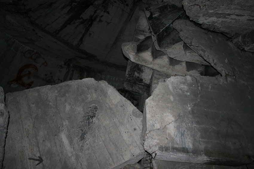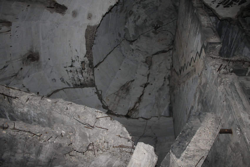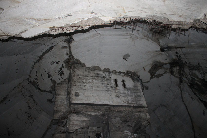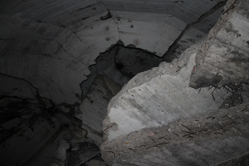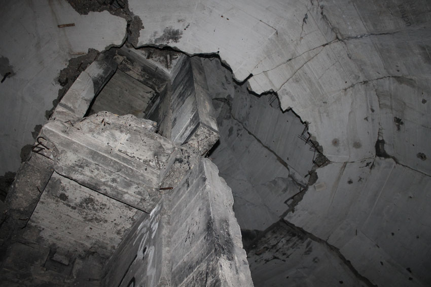 Blick bis ganz nach oben in die ehemalige achte Ebene zur Kuppelspitze. Es waren keine Sichtscharten vorhanden...