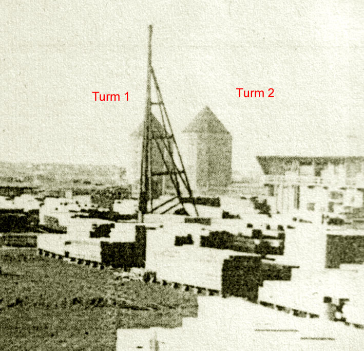 Links Turm 2 rechts halb im Bild Turm 1 / nach Kriegsende...