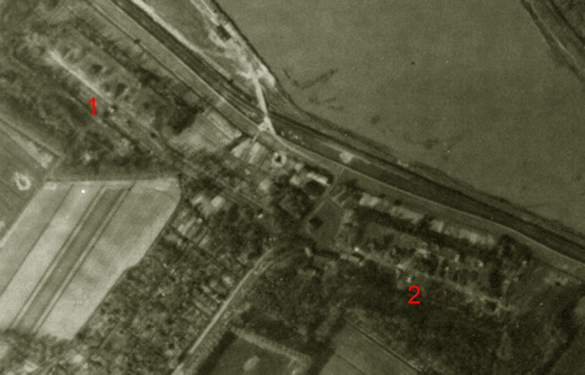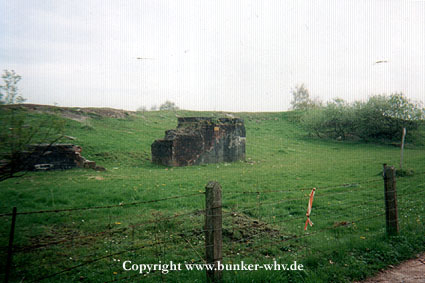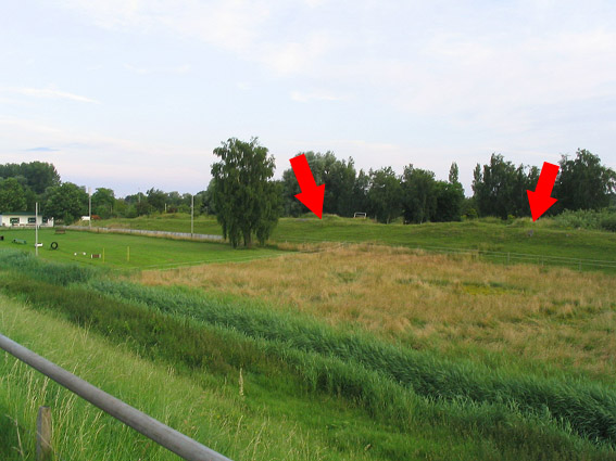 Zu sehen ist hier das Gebiet des nördlichen Batterie-Infanteriewerkes. Eine zweite, bauähnliche Batterie befand sich nicht weit südlich dieser Stellung in einem weiteren Infanteriewerk am Deich. Davon ist jedoch heute nichts mehr erkennbar.
