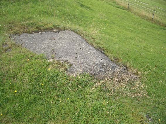 Nur dieser Betonbrocken einige Meter vom Standort entfernt konnte aufgefunden werden. Er scheint durch die Sprengung damals hierhin katapultiert worden zu sein. Natürlich ist es auch denkbar, dass er nachträglich hier abgelegt wurde. Auf jeden Fall wird er jedoch von der Verbunkerung des Infanteriewerkes 2 stammen.