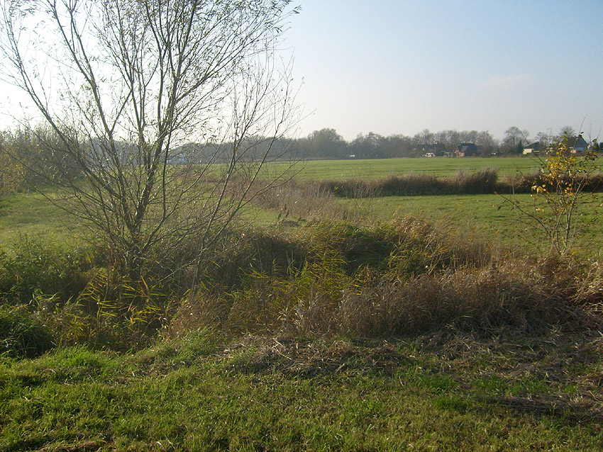 Bombenkrater oder Überbleibsel der Stellung? Hier schien, wie auf dem Luftbild oben erkennbar, jedoch keine Bettung gewesen zu sein...