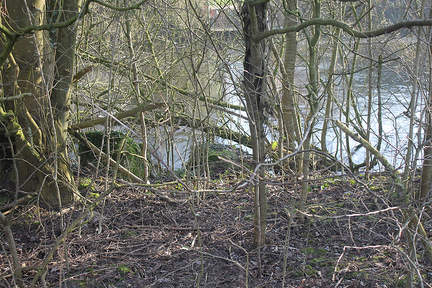 Nachtrag 09.02.18: Weitere Trümmerstücke am Fortgraben und alte Zaunreste. Die Stahlklappe mitsamt Schacht liegt in einer Linie mit dem Stichgraben zur Maade und dem Fortgraben. In diesem Bereich müsste eigentlich auch die neuzeitige Pipeline der NWO durch den Maadebogen / Fort Schaar führen. Damit hängt der historische Schacht aber keinesfalls zusammen.