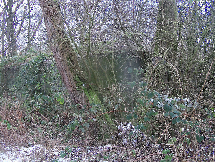 Interessant ist, dass bei diesem Bunker ein zweiter Eingang, beziehungsweise Notausgang nicht vorhanden war. Es kann natürlich sein, dass ein eventueller zweiter Eingang nachträglich versiegelt wurde. Bloß fehlt eine zweite Gasschleuse, es kann dann lediglich eine Notausstiegsluke oder ähnliches gewesen sein...