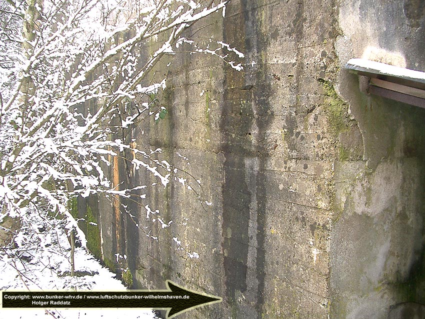 Die Außenwände des Bunkers sind teilweise mit Spritzputz überdeckt...