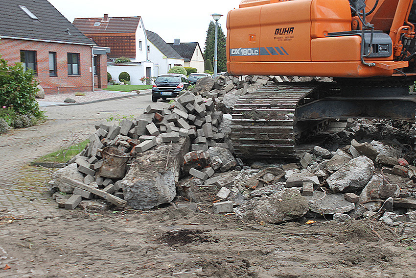 Bilder und ein Kurzfilm vom Abriss des Grabens Am Tief / Verbindungsstraße: