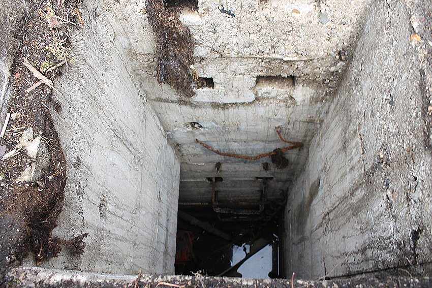 Das Eingangsbauwerk war etwas kürzer ausgeführt worden, als beispielsweise in Schortens (Heidmühle). Dies hing damit zusammen, dass diese Anlage weiter über Erdgleiche angelegt wurde und der Treppenabgang deshalb nicht derartig tief / lang ausgeführt werden musste, wie in Schortens (Heidmühle).