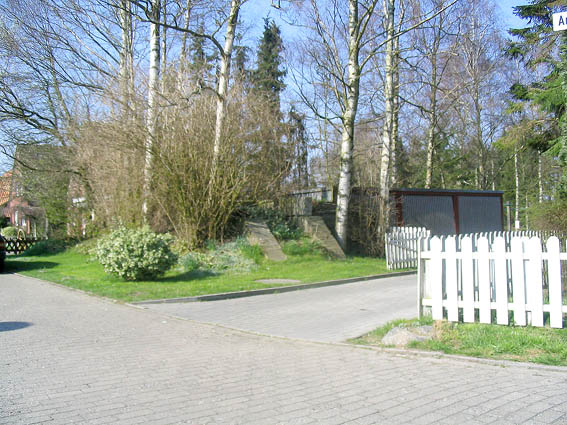 Wir danken unserem Leser "Wil" für die freundliche Bereitstellung dieses Fotos sowie die Auskunft zu diesem Objekt. Es handelt sich hierbei um einen typischen kleinen Deckungsgraben friesländischen Musters (siehe auch unter "Bunker im Umkreis"). Der Bunker ist L-förmig aufgebaut. Im hinteren Teil, dem hier sichtbaren Eingangsbereich entgegengesetzt, befindet sich ein kleiner, höchstwahrscheinlich aus Mauerwerk bestehender Lüftungsturm. Durch die sommerliche Vegetation ist dieser Bereich des Bunkers auf dem obigen Foto nicht zu erkennen. Eine Bauähnlichkeit zum nahen kleinen Deckungsgraben Middelsfähr / Lindenstraße besteht. Weitere Fotos: