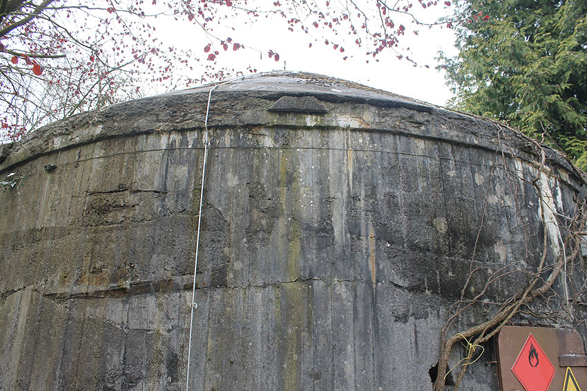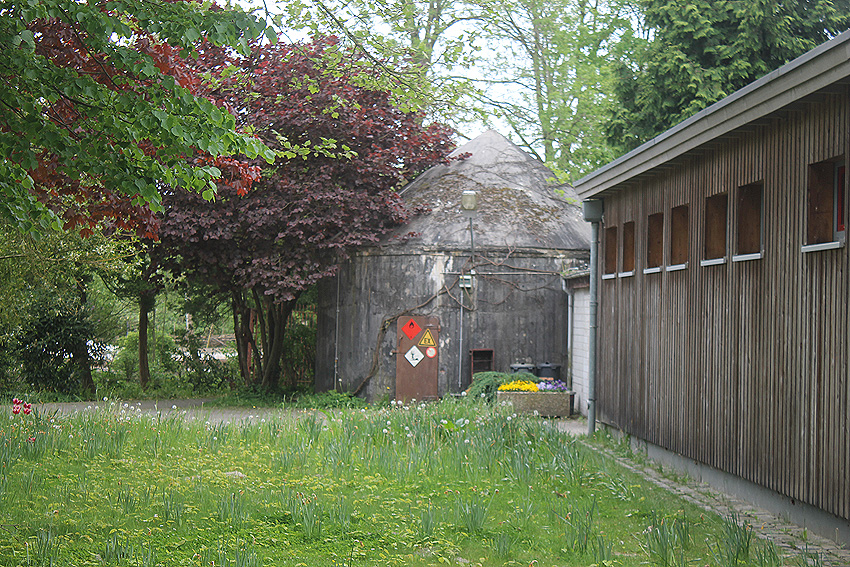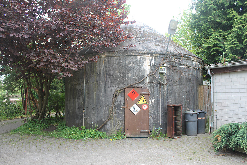 Interessant ist die Stahlantenne auf / in der Kuppelspitze des Rundbunkers. Im Bunker dürfte daher eventuell eine Funkstelle vorhanden gewesen sein. Eine gleiche Antenne befindet sich auf dem Rundbunker Gottorpstraße in der Stadtparkkolonie (diese - in heutiger Zeit - etwas kürzer / eventuell Spitze abgerostet).