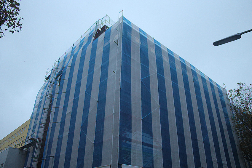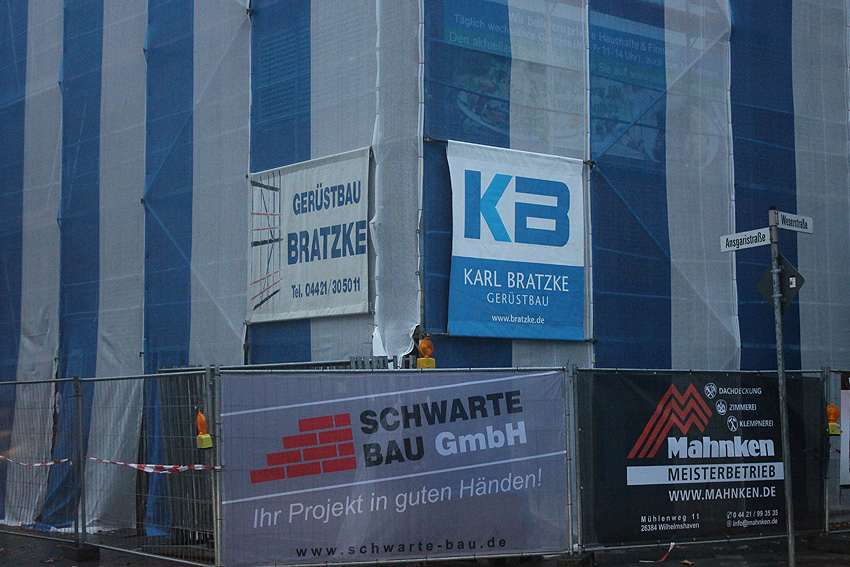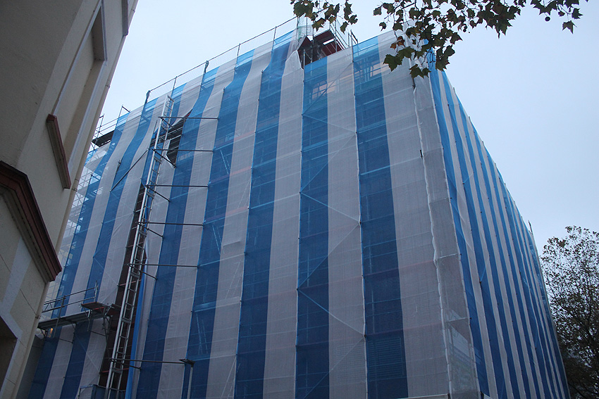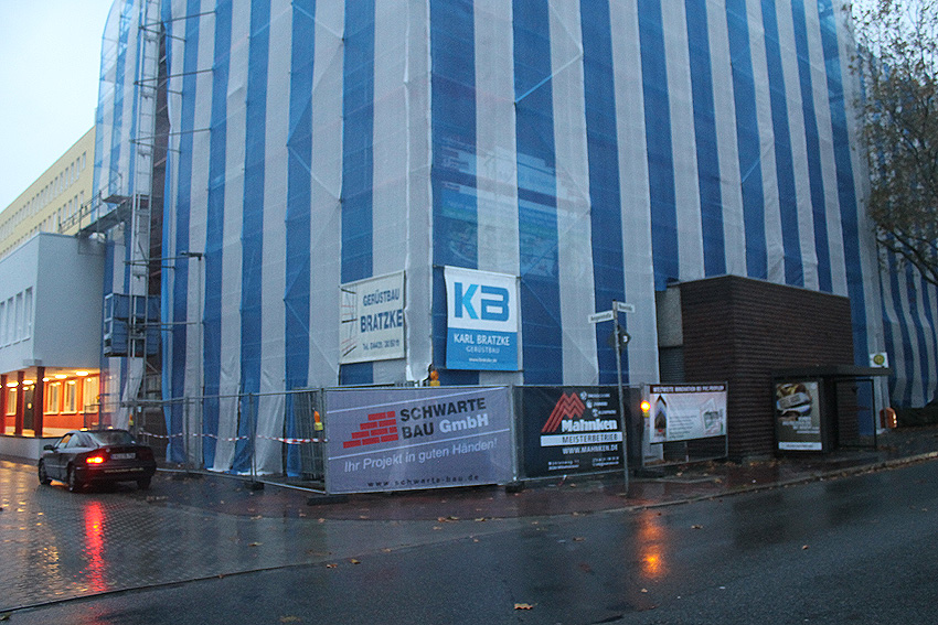 Im Herbst 2019 wurde die Fassede des ehemaligen Hospitals / Krankenhauses saniert. Auch der Bunker war zeitweise verhüllt.