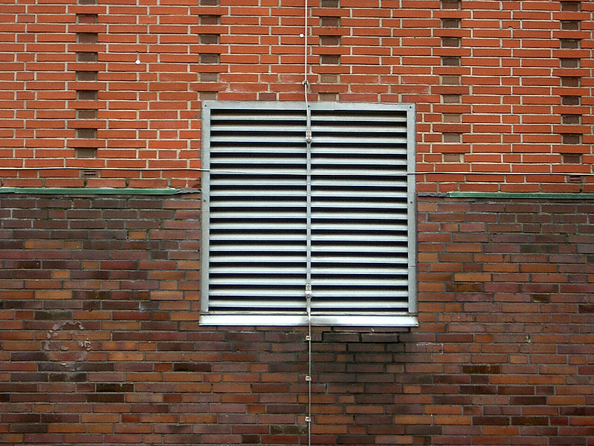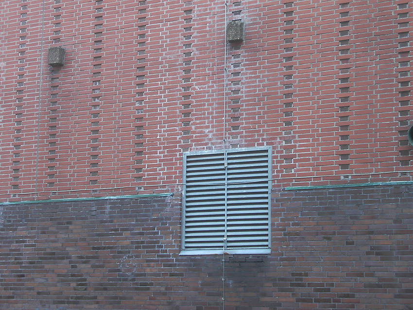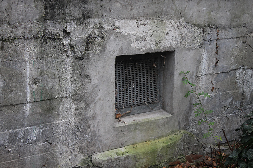 Vier nachträglich versiegelte Öffnungen an der Ostwand. Ursprünglich waren hier Stahlklappen installiert: