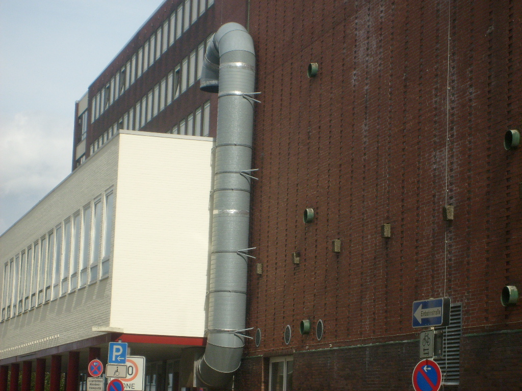 Um nach einer eventuellen Zerbombung der östlichen Hospital-Anbauten des Bunkers sowie der hohen Wohnhäuser an der Weserstraße im Falle einer in Folge eintretenden Verschüttung vorhandener Luftschächte von hier extern Luft anzusaugen bzw. abzustoßen.