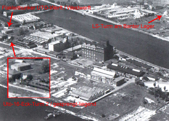 Späte 1950er Jahre / frühe 1960er Jahre / ganz links Bunker UTO-Werft 2, rechts davon Bunker UTO-Werft 1, darunter LS-Turm UTO-Werft 2...