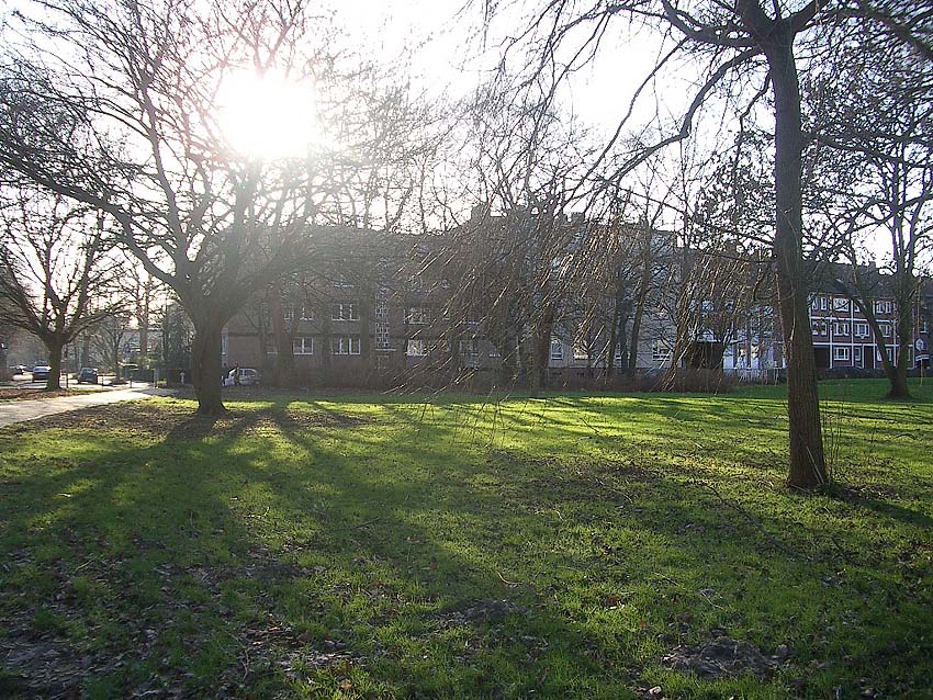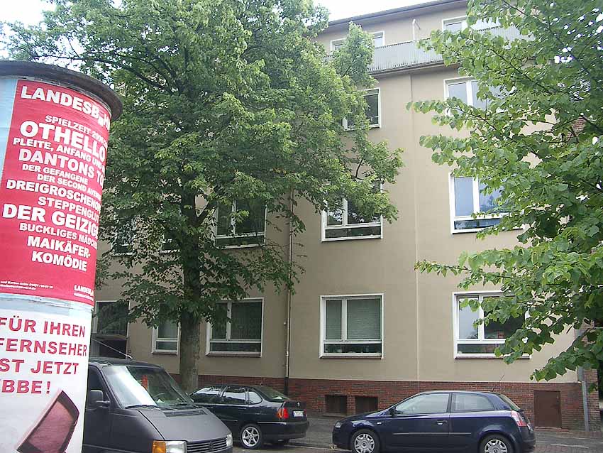 Das hinter dem Bunker ersichtliche Haus ist noch heute vorhanden und beweist damit, dass es sich bei dem obigen Foto auch aufgrund der Entfernung vom Bunker zum Haus tatsächlich um den Bunker Viktoriastraße handelt und nicht um den nahen LS-Turm Gorch-Fock-Platz. Das Haus wurde verblendet und aufgestockt. Klar ersichtlich ist noch heute der kleine Vorbau an der Hausfassade: