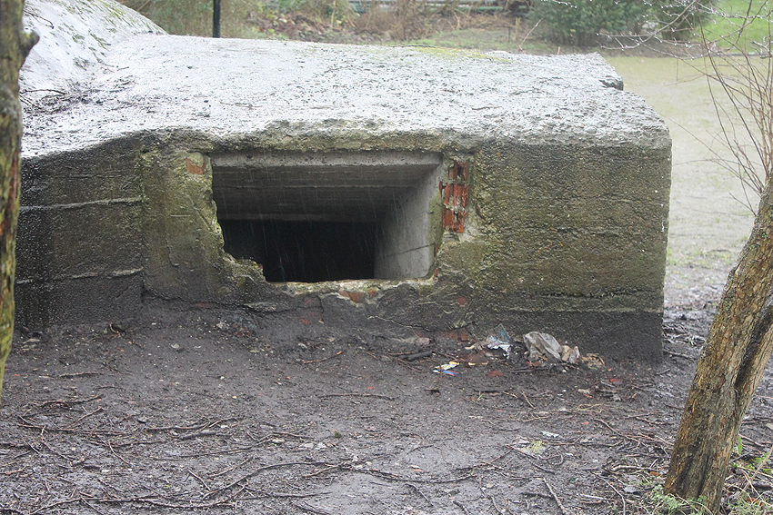 Dezember 2018: Mittlerweile wurde eine Schicht Erdreich vor die Eingangsstelle geschüttet. Eventuell war der Bunker in der Zwischenzeit nochmals aufgebrochen worden.