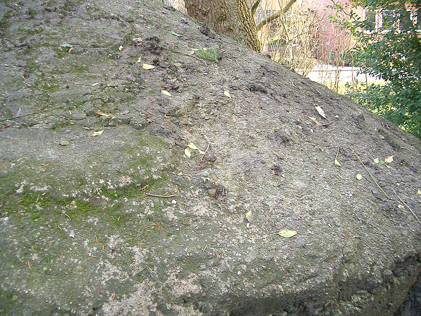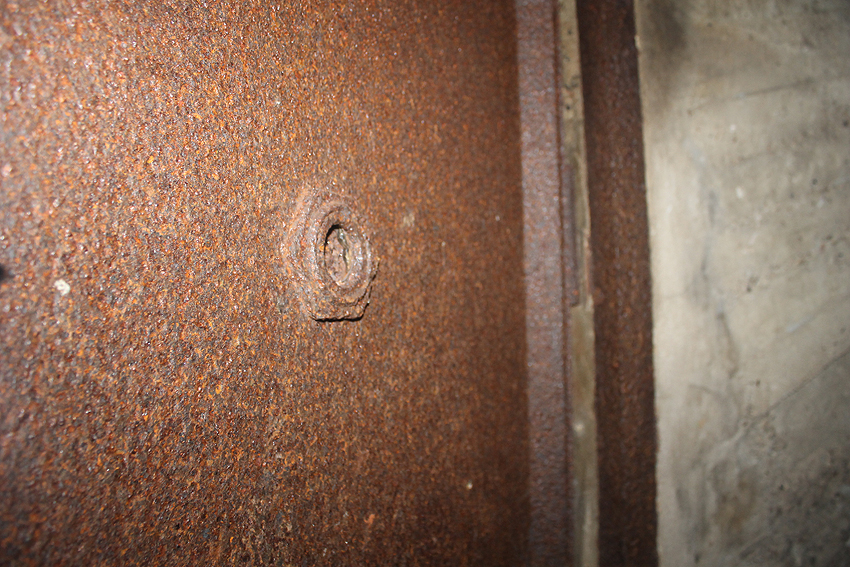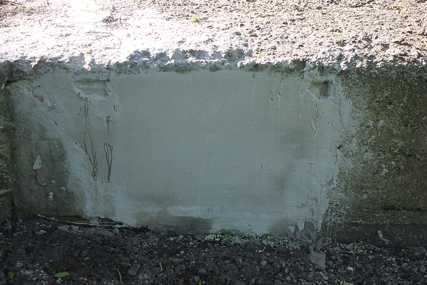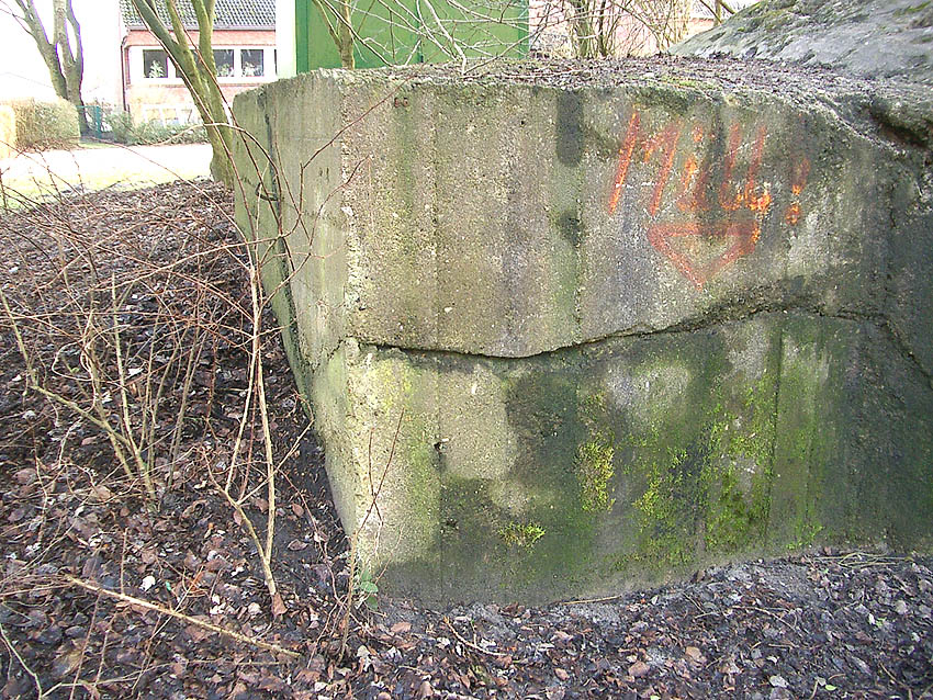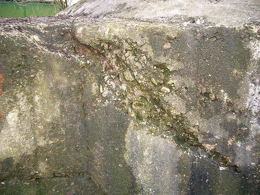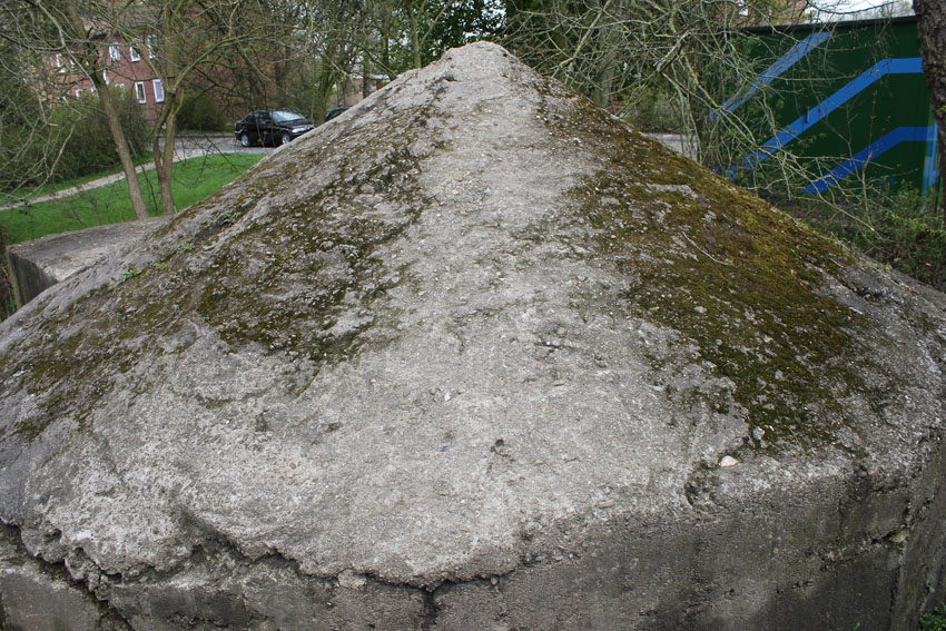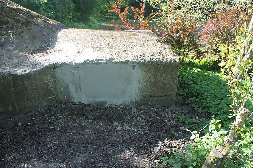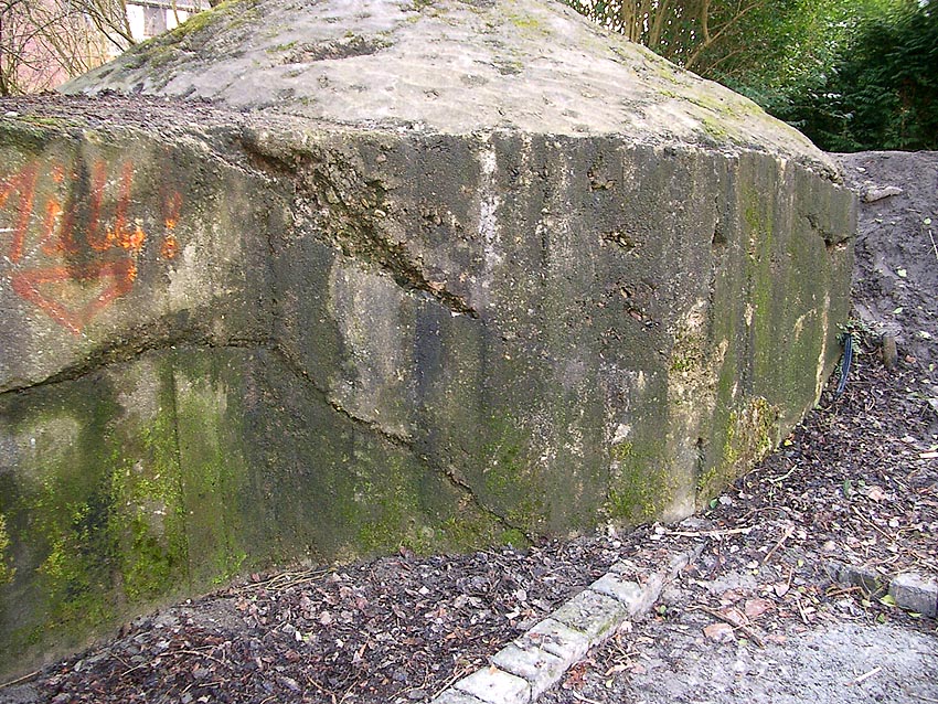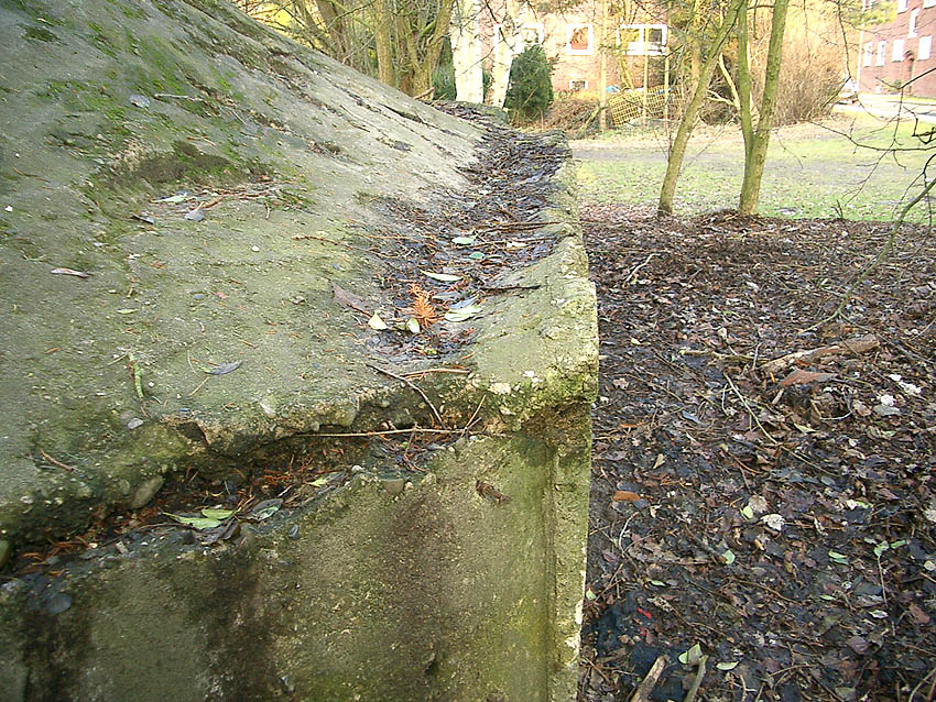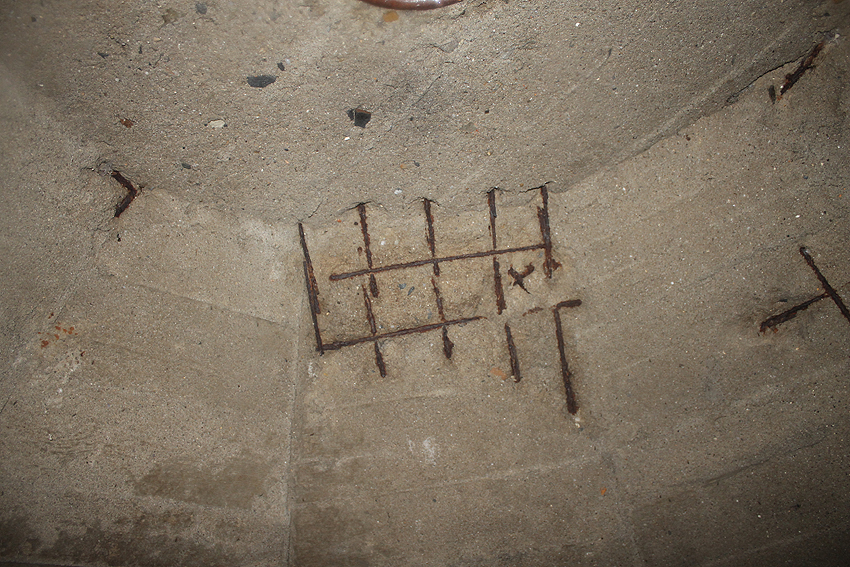 Der Beton der Kuppel wurde mit einem Spaten festgeklopft. Der Bunker ist in Eigenbau entstanden. Die Betongüte und die Schalung sind als eher dürftig zu bezeichnen. Es kam bei diesem Bauwerk nur noch auf die schnelle Schaffung eines Schutzraumes an.