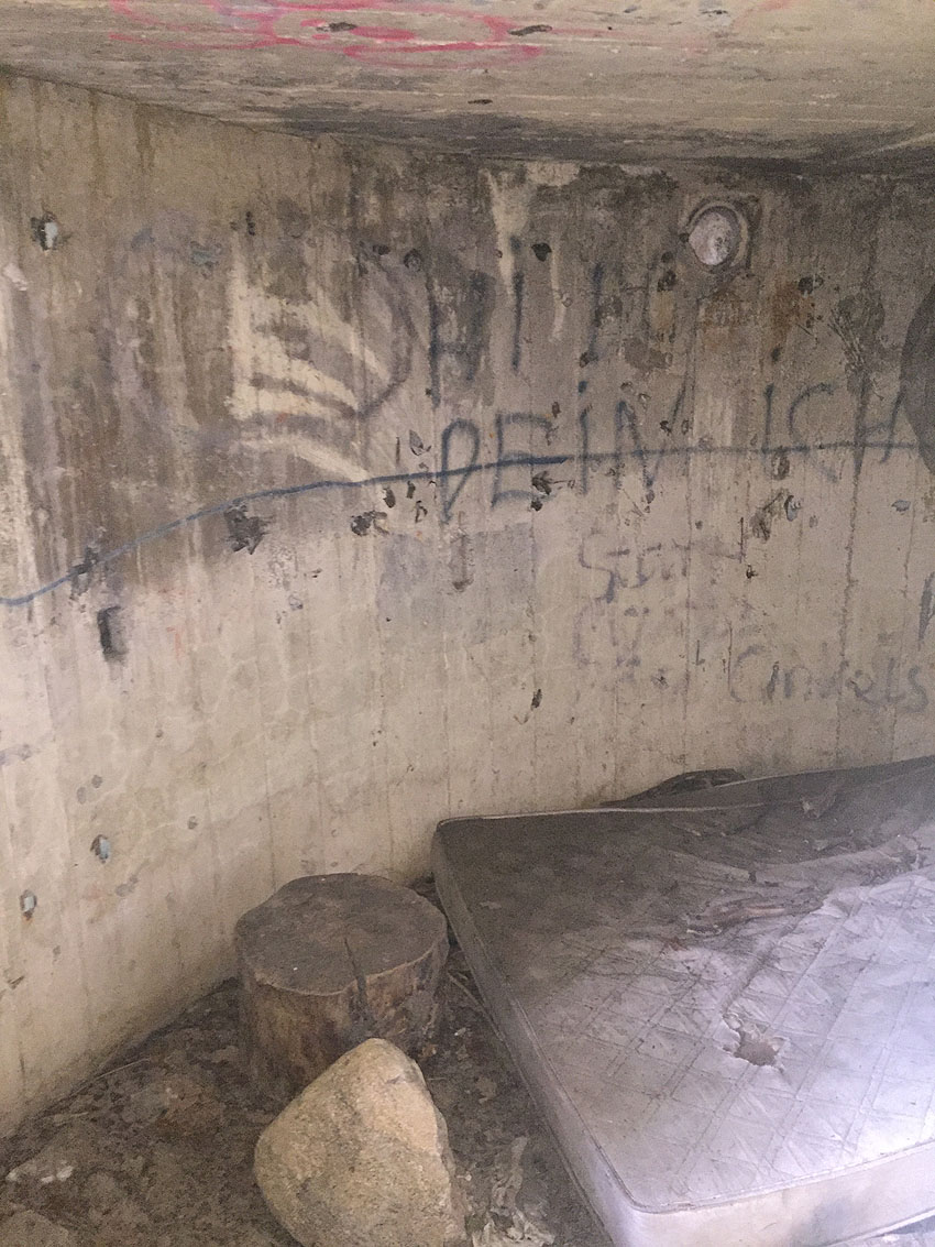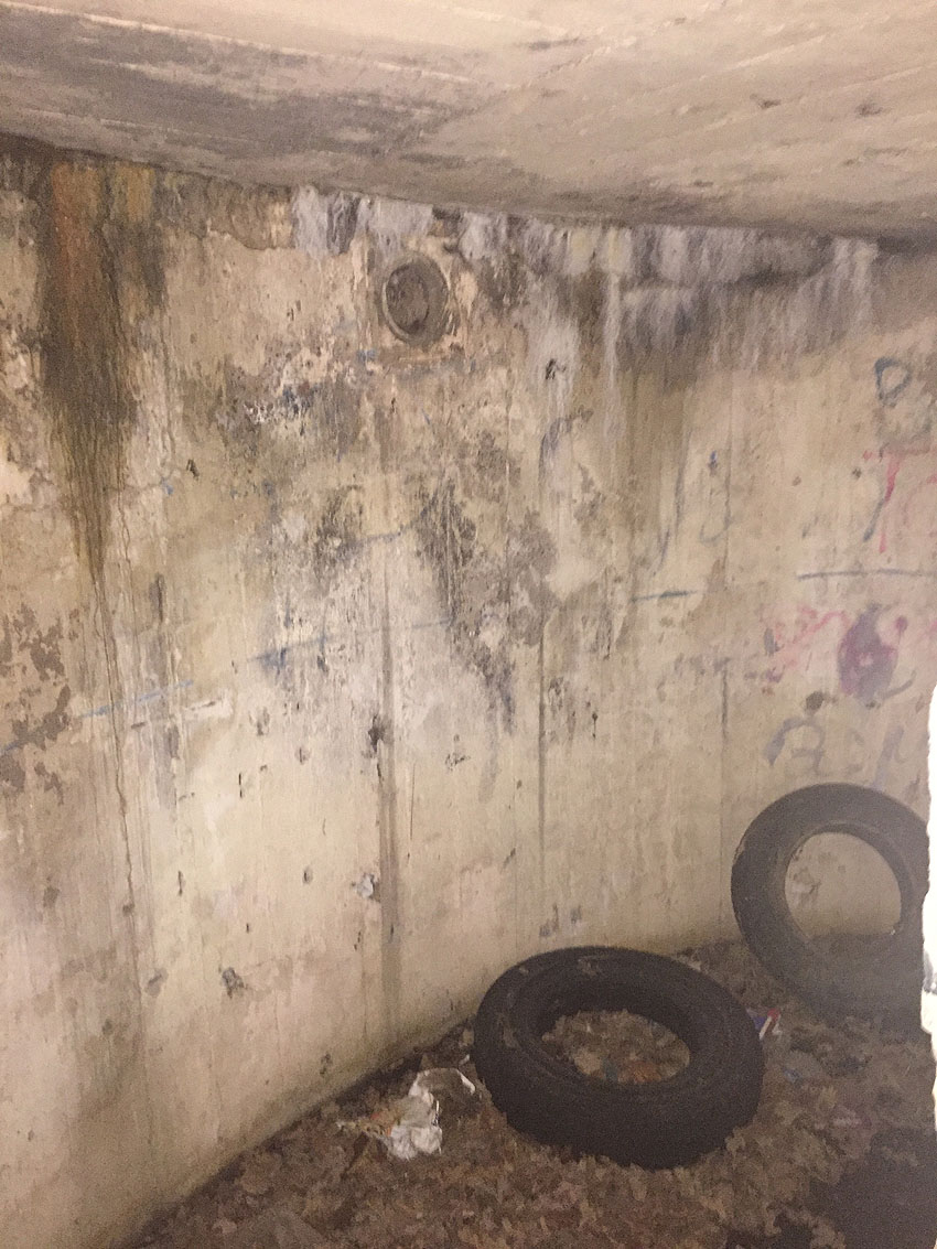 Hier befand sich ursprünglich der Notausstiegsblock. Aufgrund der Demilitarisierungsmaßnahmen dürfte er bald nach dem Krieg entfernt worden sein...