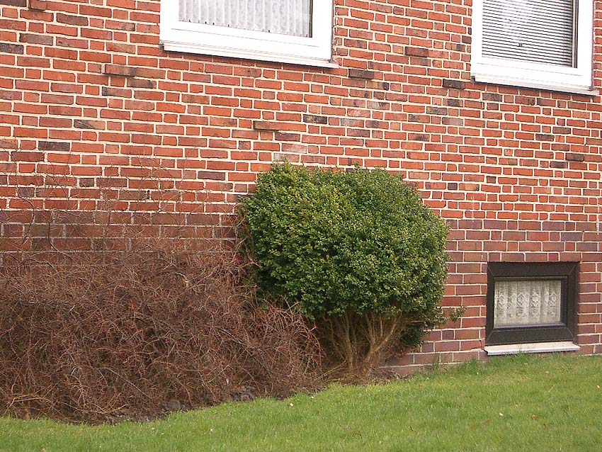 Wilhelmshaven / Kurpark / Bremer Straße 15 (im Hindenburgtor) / im Jahr 2023 erhalten (im Kellerfensterschacht dürfte sich im Krieg ein Mannesmann-LS-Gitter befunden haben / der geklinkerte Rand wird nach Ausbau des Gitters gefertigt worden sein)