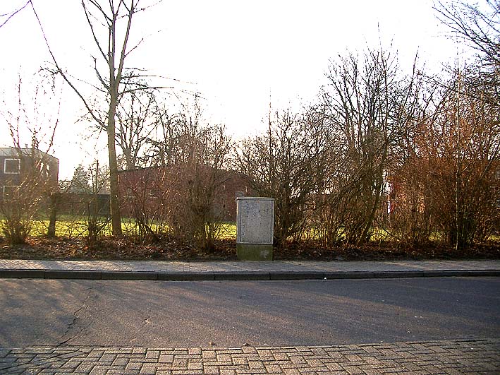 Dies war der Standort des rechteckigen Kleinbunkers. Er stand nach mehreren Aussagen links im Bild auf dem Gebiet des heutigen Neubaues der Polizeiwache und endete fast direkt am Gebäude in der Bildmitte...