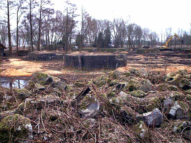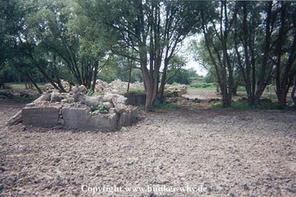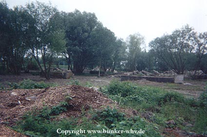 Der am T 750 Ost heutige Hannoversche Straße (damals Ostfriesenstraße) im Unterbereich erkennbare helle Schriftzug stammt aus der Nachkriegszeit. Was dort stand, ist noch unklar. Im Vordergrund das Betonfundamentfeld der nicht realisierten Halle des Projektes Nordwerft westlich der heutigen Celler Straße.