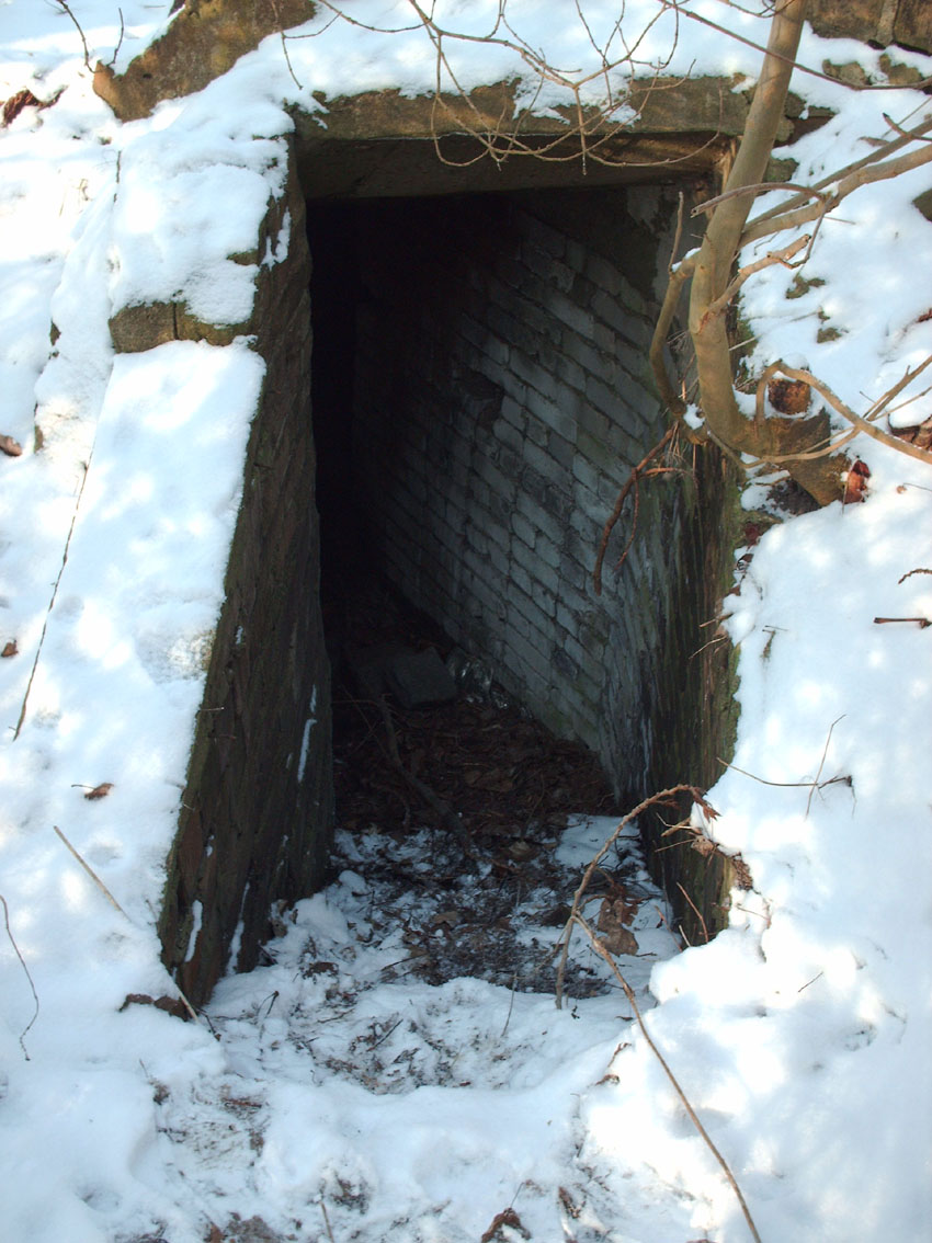 Dieser kleine private Erdbunker diente sehr wahrscheinlich regulär nicht mehr als 5 Personen des anliegenden Gehöftes im Krieg als Behelfsschutzraum. Der Kleinst-Schutzraum wurde im Bereich seiner Decke aus Beton gefertigt. Die Wände sind gemauert. Heute ist der Innenraum teilweise zusammengefallen (hintere Wand und Decke) und in einem sehr verwitterten Zustand. Erdreich wurde in den Bunker hineingeschüttet. Ein rein zweckmäßiger, ins Erdreich gegrabener Schutzbau. Von der nahen Straße aus gesehen erinnert das Bauwerk stark an die kleinen Erdbunker, welche im Bereich Delmenhorst-Adelheide um den dortigen Wehrmachtsstandort herum angelegt worden sind. Alles in allem ähnelt das Innere stark an die Behelfsstollen, welche oft in den Hügeln des Osnabrücker Landes anzufinden sind. Lediglich der Eingangsbereich dieses Bunkers weist eine relativ "mühevolle" Gestaltungsform auf...