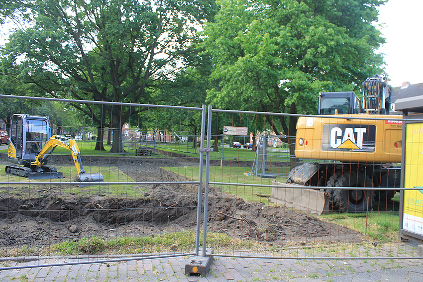 Im Sommer 2017 fanden hier auf dem Gelände Erdarbeiten statt (für die südliche Erweiterung des dortigen Spielplatzes). Der gleiche Eindruck herrschte allerdings auch im Zweiten Weltkrieg beim Aushubbeginn für Zickzack-Deckungsgräben im frühen Baustadium...