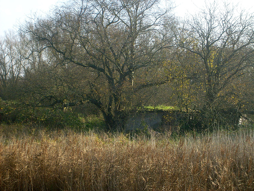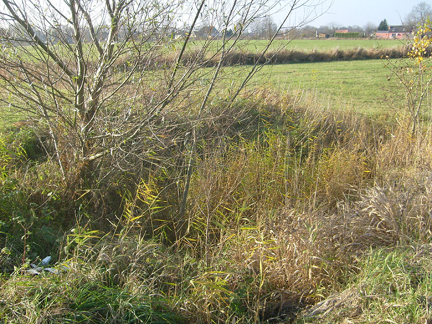 Bombenkrater oder Überbleibsel der Stellung? Hier schien, wie auf dem Luftbild oben erkennbar, jedoch keine Bettung gewesen zu sein...