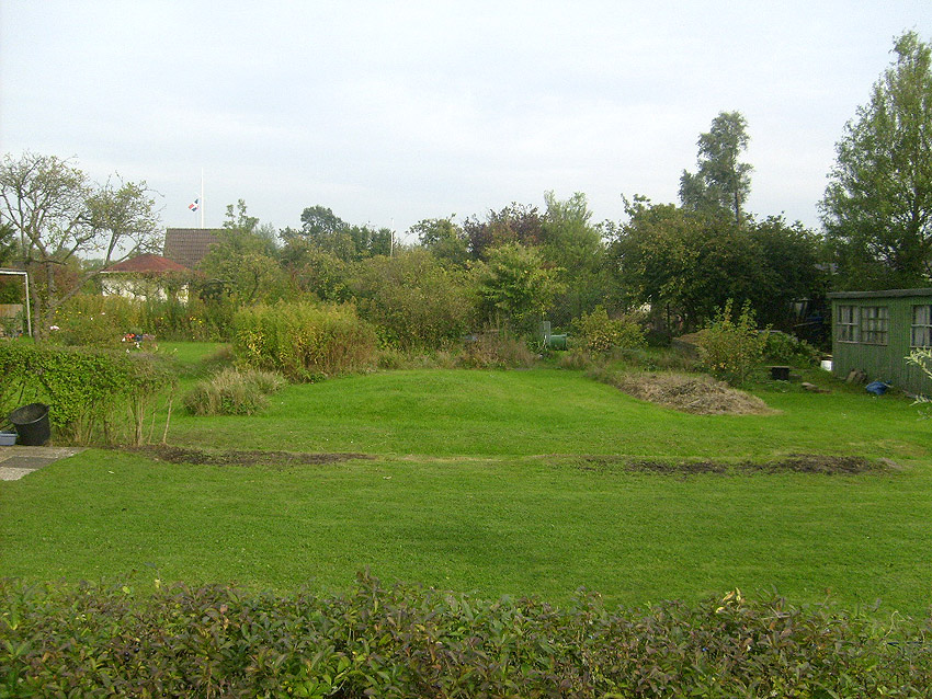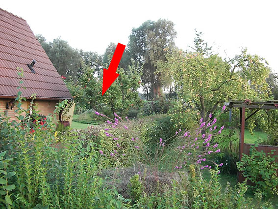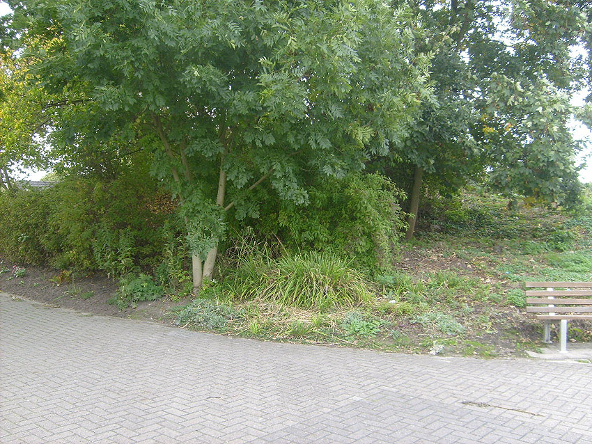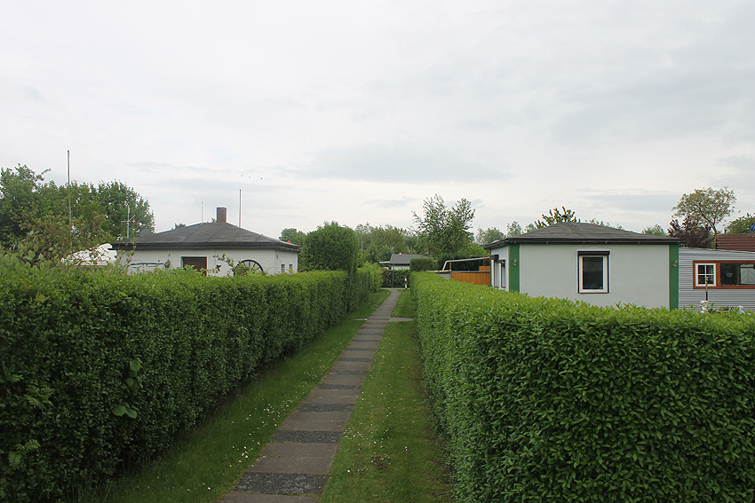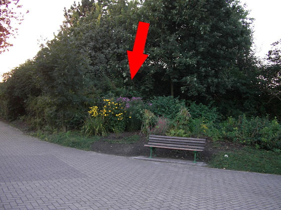 Hier rechts / nördlich des Grabens befand sich der Scheinwerferstandturm in Höhe des dortigen Kleingartenparkplatzes / unmittelbar nördlich des heutigen Jadestadions: