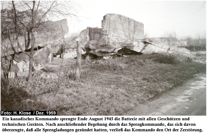 Die kriegswichtige Stellung wurde bereits Ende August 1945 durch Sprengung (kanadische Pioniere) unbrauchbar gemacht.