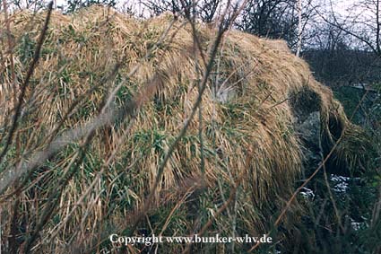 Oben: Großteilig überschüttete Reste des Maschinenbunkers