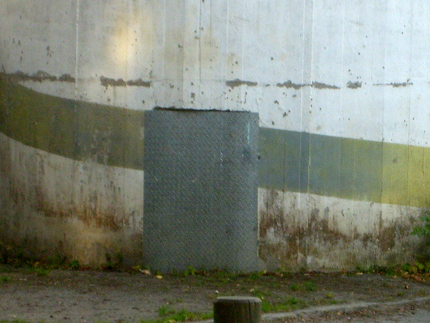 Bild oben: Interessant ist das Objekt rechts der Tür. Es hat ungefähr die Größe des rückwärtigen Notausstieges. Gab es hier vielleicht keinen Betonblock darin, sondern eine Stahlklappe davor (innen und außen)? Ist diese (dann wohl äußere Klappe) hier zu sehen?