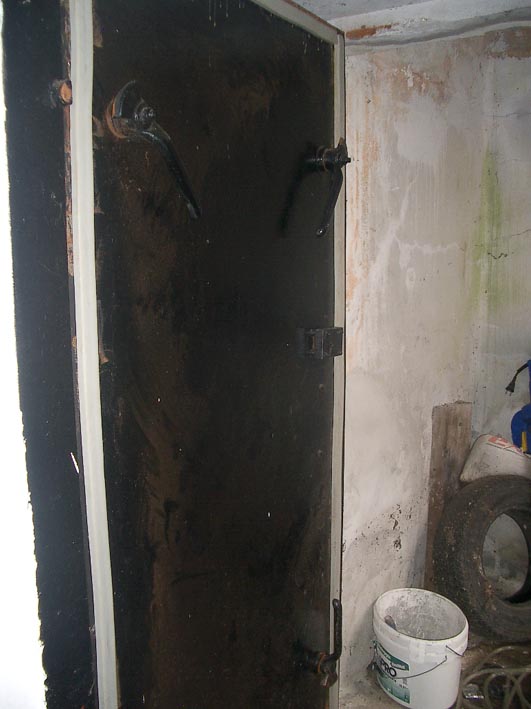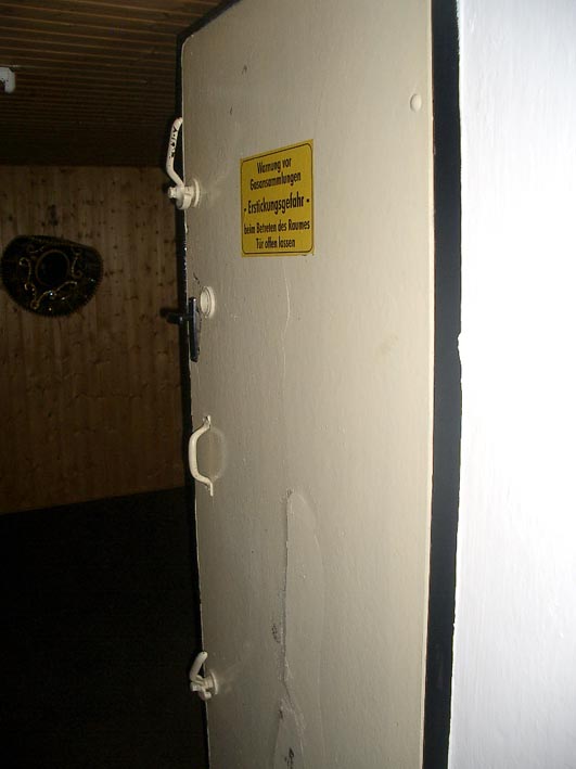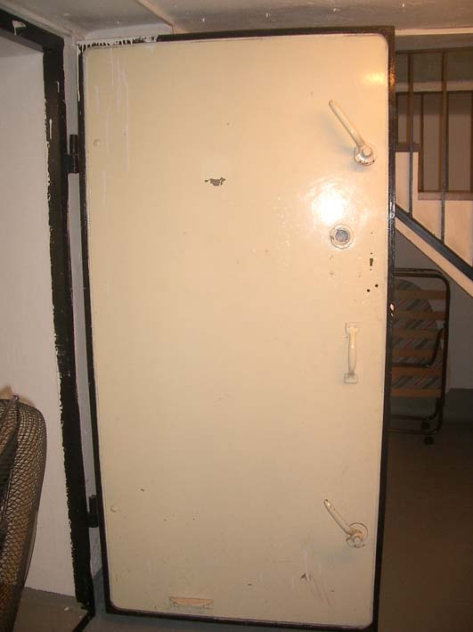 Interessant sind die vielen noch vorhandenen Schutztüren der einzelnen Räume. Die Sichtaugen befinden sich hier nicht mittig, sondern am Rand der Türen.