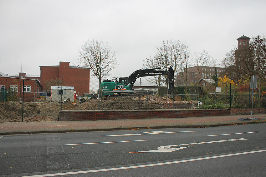 Die Restbereiche der alten Werftmauer werden nun durch die Bunkerwand per Träger gestützt.