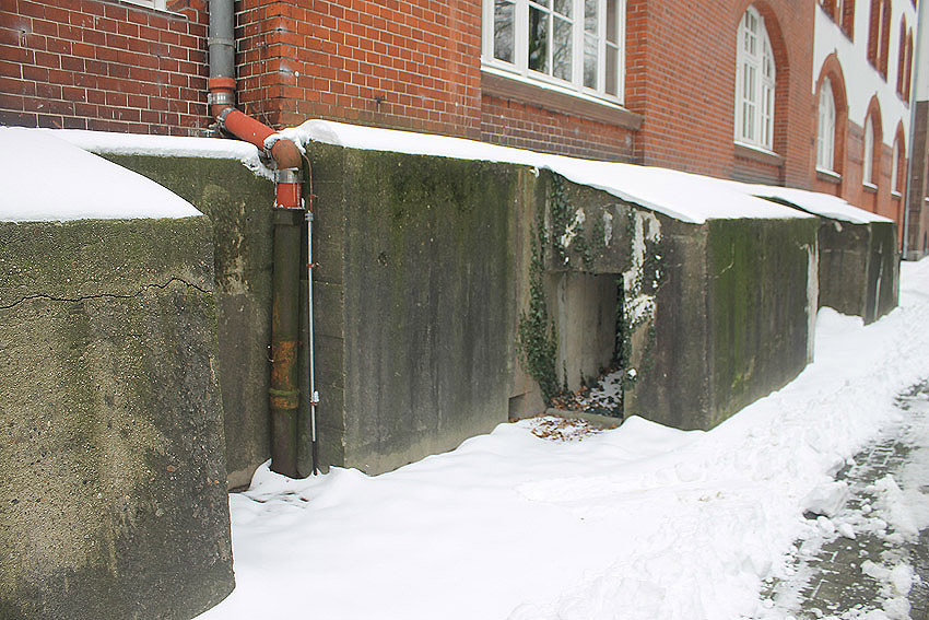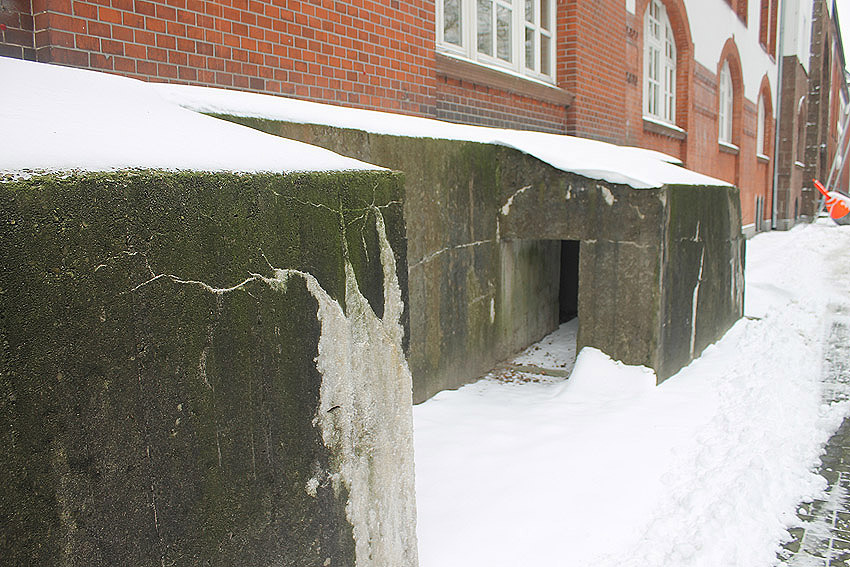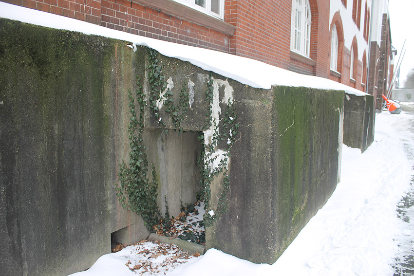 Noch heute erhaltene Verbunkerungen an der ehemaligen Torpedokaserne (andere Quelle: äußerster Westbereich Roonkaserne).
