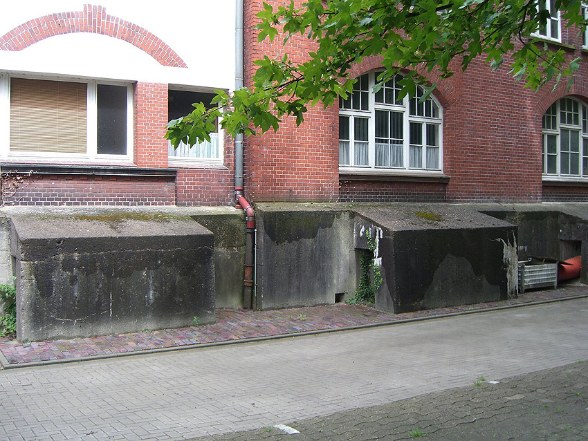 Die Verbunkerungen befinden sich genau gegenüber vom LS-Turm Rheinstraße / Gökerstraße...