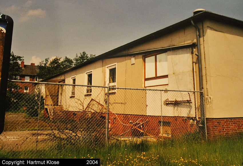 Folgende Bilder: Am Behelfsbunker war im dortigen Gebäude bis kurz nach der Jahrtausendwende der Wilhelmshavener Zivilschutz / Katastrophenschutz ansässig. Der nahe Hochbunker Genossenschaftsstraße wurde zeitweise für Übungen genutzt. Bemerkenswert ist die Haube auf dem Schornstein. Eventuell stammt diese von einer Sirene (jedoch wohl nicht vom Typ E57). Das Gebäude samt Behelfs-Schutzbau wurde 2005 abgerissen. Heute ist hier ein Supermarkt samt Parkplatz.