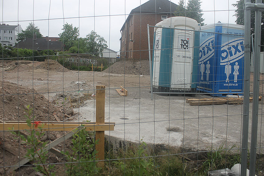 Stand 02.06.18: An der Allerstraße wird im Bereich des neuen Wohnhauses weiter gebaut. Die Bunkerplatte ist bis dato noch vorhanden. Wir berichten weiter.