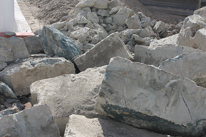 Die abgelagerten Dinge stammen von einer aktiven (!) Baustelle auf der anderen Straßenseite...