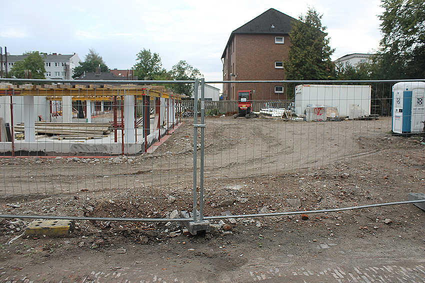 Nachtrag 13.08.19: Mittlerweile wurde das südlich anliegende Wohngebäude abgerissen. Der Neubau auf dem Allerstraßenschulgelände ist merklich vorangekommen.
