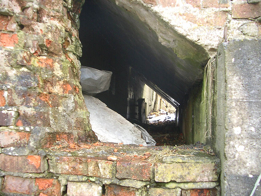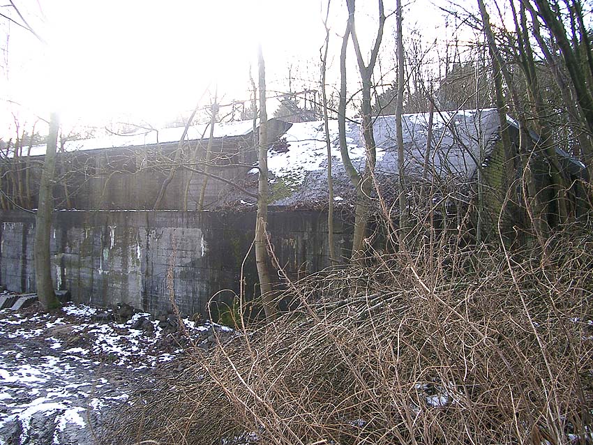 Der gesprengte Bereich an der Westfassade. Hier befand sich ursprünglich ein Anbau mit Beobachterturm und leichter Flakstellung...