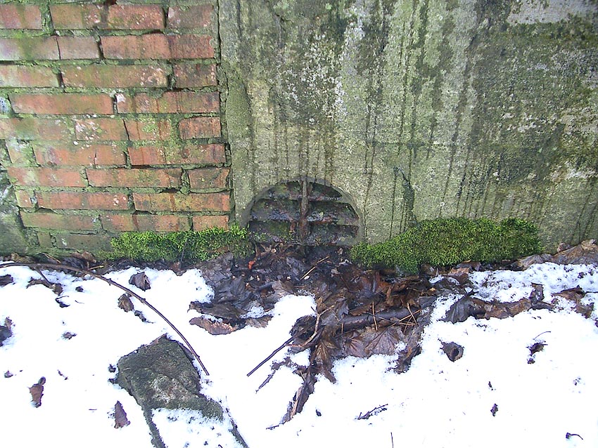 Drei alte Kanalschächte und eine teilzerstörte splittergeschützte Beton-Munitionslagerkiste im Nahbereich der ehemaligen Luftverteidigungszentrale: