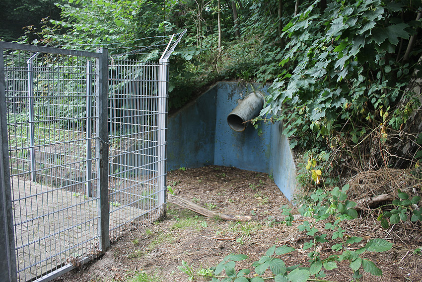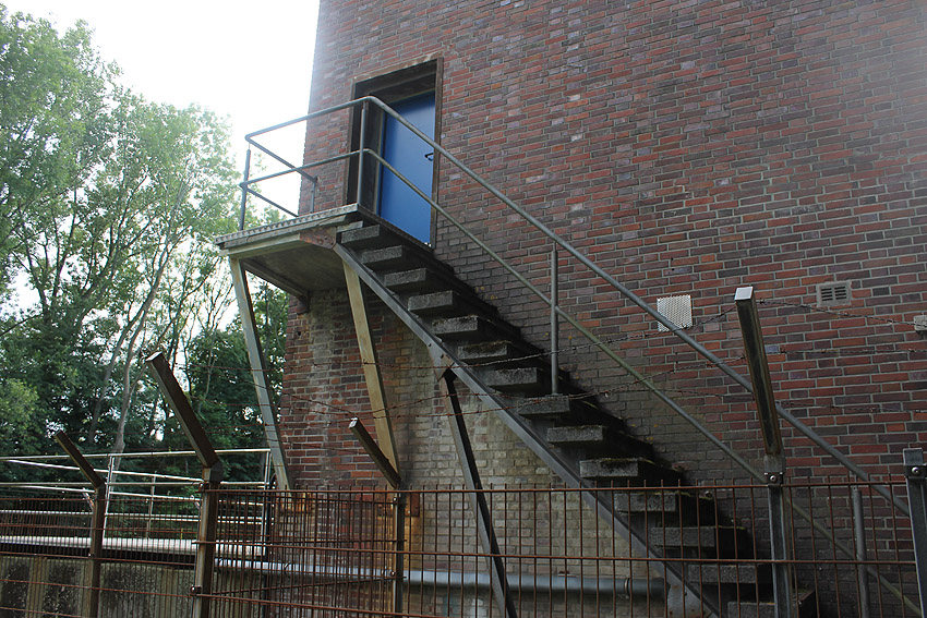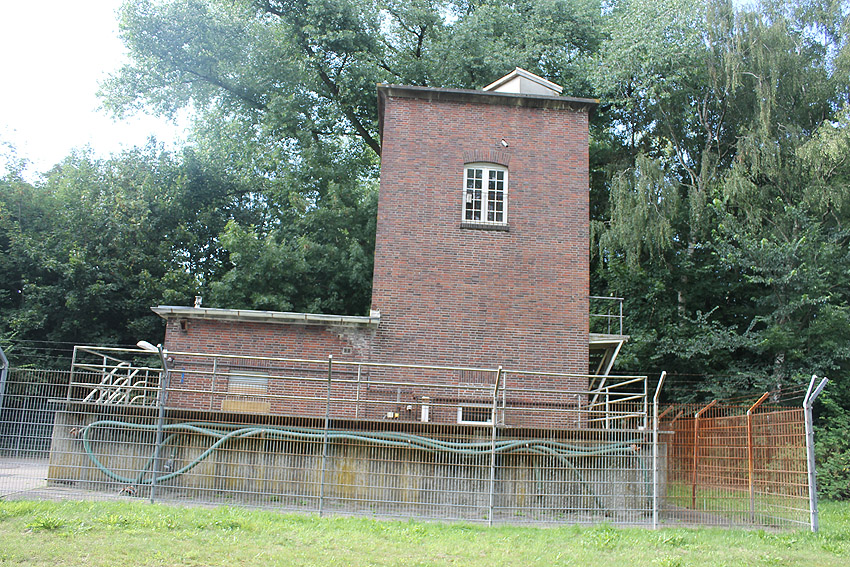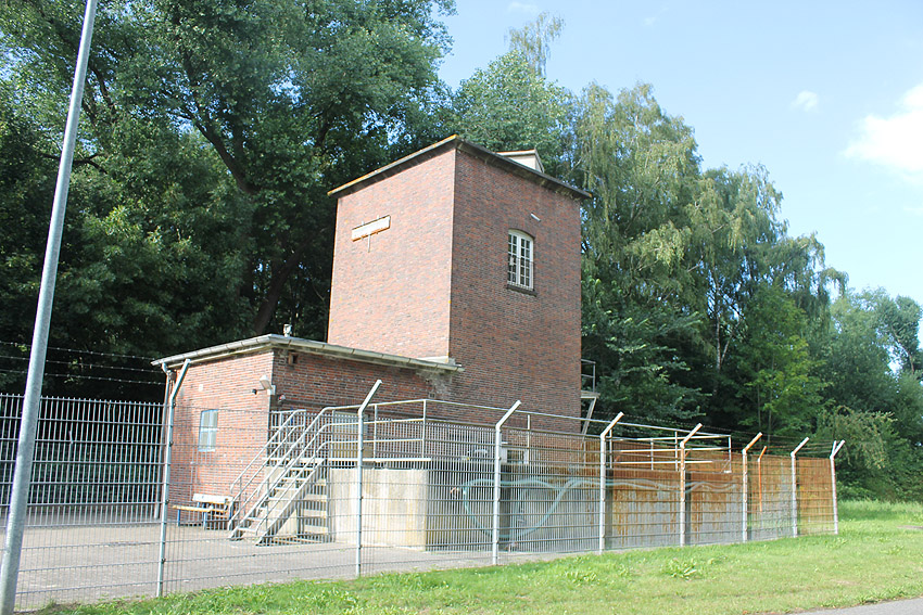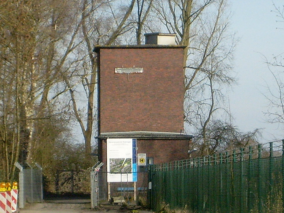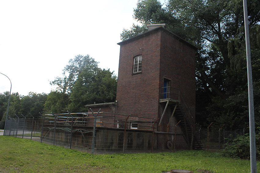 Was hat es mit den Klärgruben und den dortigen beiden massiven Tanks auf sich? Wurden die Objekte, die schon vor dem Krieg gebaut worden waren, im Zuge des Luftschutzes verbunkert? Zumindest der oben abgebildete, am Klärwerk befindliche Turm weist eine verbunkerte Dachplattform, eventuell einen Beobachtungsstand, auf. Siehe auch: Hier