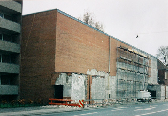 Die Mauerwerkverblendung wurde dann in den frühen 1970er Jahren angebracht. Durch unsachgemäße Montage bröckelte sie Ende der 1970er Jahre zunehmend ab, worauf sie - wie auf dem Bild zu sehen - wieder entfernt wurde.