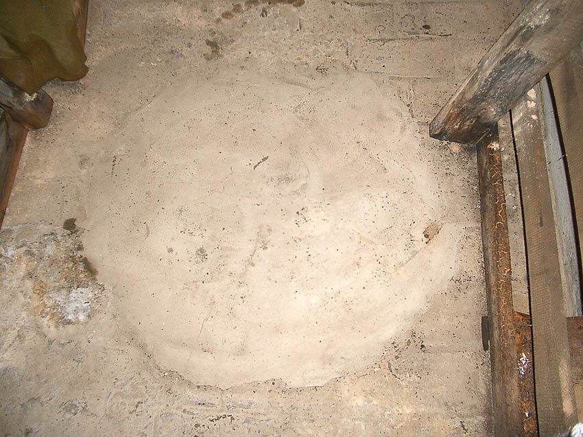 Hier an der Wand des Hauptraumes war ursprünglich der Lüftungsschacht...
